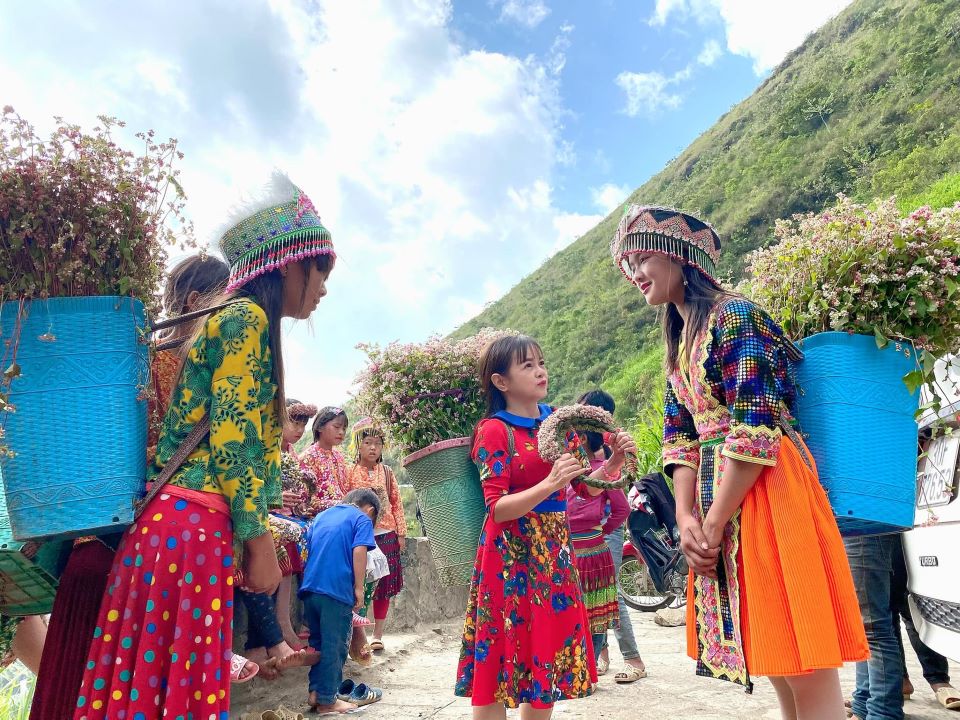 07h30: Tham quan Làng văn hóa Lũng Cẩm - bối cảnh phim "Chuyện của Pao". Tùy mùa, bạn sẽ đắm mình trong sắc hoa đào, hoa mận rực rỡ (mùa xuân), hoặc hoa tam giác mạch tím ngát (mùa thu), chụp ảnh giữa những ngôi nhà trình tường cổ kính.